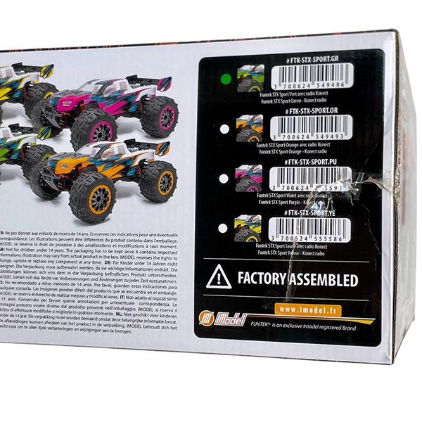 Le STX de Funtek contient tout le nécessaire pour que la voiture soit opérationnelle rapidement. Les 4 roues motrices (4WD) sont efficaces sur tous les terrains et sur toutes les surfaces. La télécommande est équipée de la technologie 2,4 Ghz permettant de jouer sans interférence jusqu'à environ 100 mètre et avec autant de voitures que vous voulez en même temps !! Extrêmement robuste et facile à entretenir, le STX Funtek fera le bonheur de tous les passionnés de voiture télécommandée. Un bouton sur la télécommande vous permet de régler la vitesse maximum.