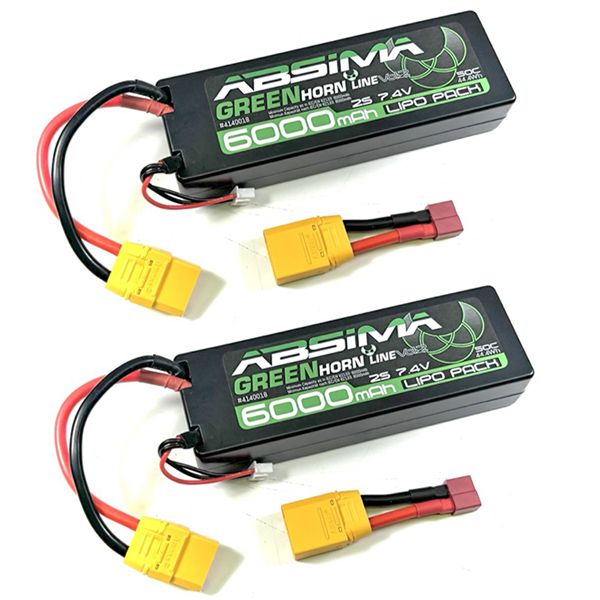 Avez ces deux batteries Li-Po de 6.000mAh chacune, vous bénéficiez de 12.000mAh au total. Ces accus Li-Po Absima, de taille standard, pourront être utilisé sur les voitures télécommandées électriques compatibles Li-Po équipées en prise XT90 ou Dean. Idéal pour les modèles RC de loisir à l'échelle 1/10 et 1/8. Grâce à son adaptateur, vous pourrez utiliser cette batterie sur les voitures équipées en prise Dean (T-Plug) ou prise XT90.