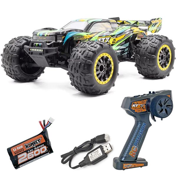 Successeur direct du légendaire Funtek STX, le Funtek STX G2 conserve toute la puissance et la fiabilité de son prédécesseur, tout en intégrant une série d’améliorations majeures qui le propulsent dans une toute nouvelle dimension. Ce Monster Truck 1/12 XL a une transmission totalement en métal avec quatre roues motrice et grâce à sa plateforme ouverte vous avez un accès aisé aux différents éléments. Son nouveau design de carrosserie encore plus agressif, et ses amortisseurs hydrauliques offrent un comportement réaliste et une meilleure absorption des chocs. La direction gagne en précision avec un nouveau servomoteur de 8Kg, tandis que la résistance frontale est renforcée par un pare-chocs redessiné intégrant un kit LED pour des runs spectaculaires, même à la tombée de la nuit. Sous le capot, le nouveau variateur électronique 45A assure une gestion fluide et puissante du moteur type 550, avec un connecteur rapide facilitant le branchement. Le tout est contrôlé via la nouvelle télécommande KONECT KT3X SPORT, pour une expérience de pilotage plus précise et plus réactive. Alimenté par une batterie Li-ion 2S 2600mAh prise XT60, le Funtek STX G2 offre jusqu’à 20 minutes d’autonomie avec une vitesse de pointe de 50 km/h. L’ensemble est livré complet et prêt à rouler (RTR), incluant l'adaptateur de charge USB et 3 piles LR06 pour la radio.