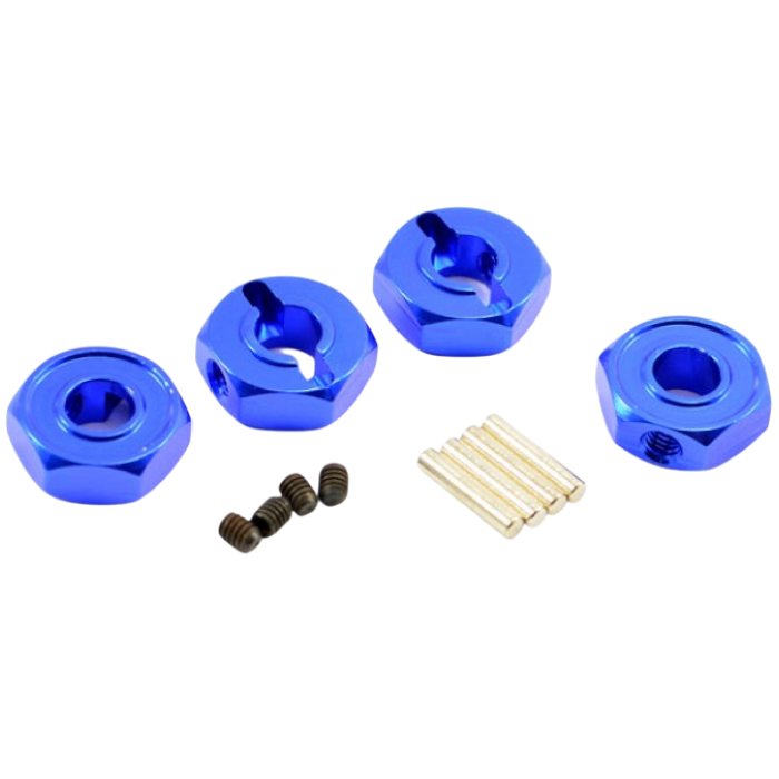 Jeu de quatre hexagones d'entrainement de roue plus clavettes en aluminium anodisé bleu pour voiture FTX 1/10