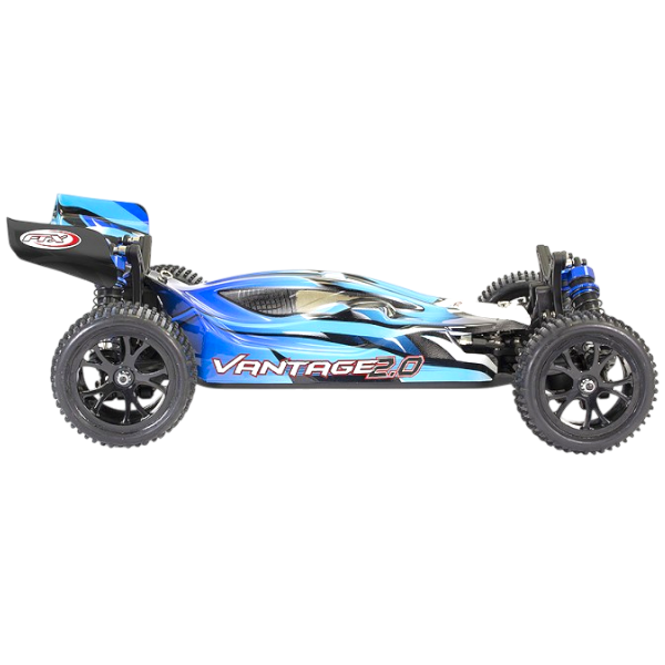 Le FTX Vantage 2.0 offre une valeur sûre. Son système de transmission 4x4 à cardans est intégré à un châssis moulé et comprend deux différentiels équipés de pignons métalliques. Pour accroître la fiabilité, une protection est mise en place pour la couronne centrale et le pignon moteur. Le FTX Buggy Vantage 2.0 est livré avec tout le nécessaire pour être opérationnel dès la sortie de la boîte (il suffit d'ajouter des piles LR6 pour la télécommande).