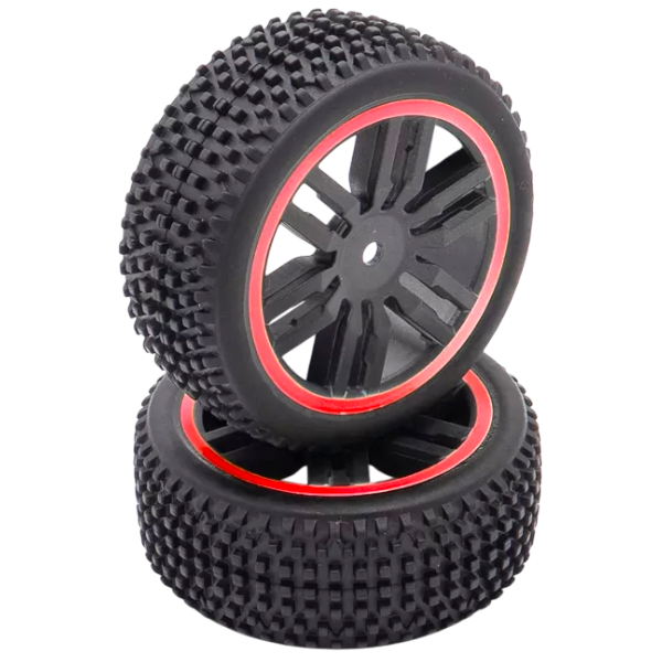 Paire de roues arrière complète rouge (pneus collés sur jantes) pour Funtek 1/12