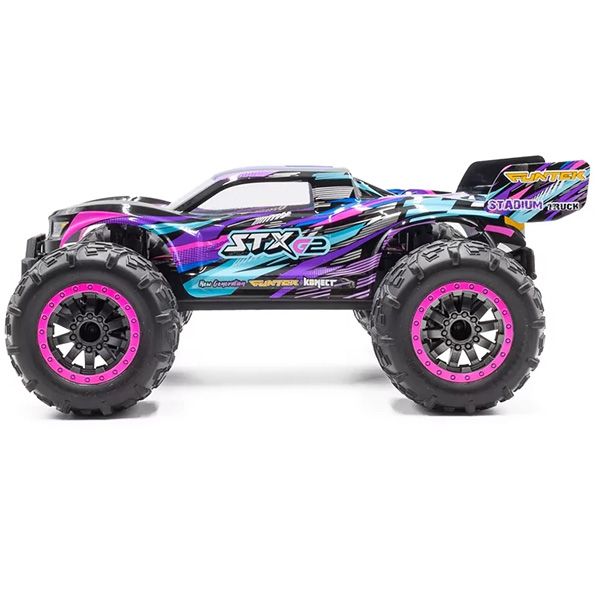 Nous vous proposons le STX G2 Funtek dans sa toute dernière version avec, en plus, un chargeur rapide et automatique ainsi qu'une batterie supplémentaire. Vous aurez ainsi une voiture RC au top avec une autonomie totale d'environ 45 minutes. Successeur direct du légendaire Funtek STX, le Funtek STX G2 conserve toute la puissance et la fiabilité de son prédécesseur, tout en intégrant une série d’améliorations majeures qui le propulsent dans une toute nouvelle dimension. Ce Monster Truck 1/12 XL a une transmission totalement en métal avec quatre roues motrice et grâce à sa plateforme ouverte vous avez un accès aisé aux différents éléments. Son nouveau design de carrosserie encore plus agressif, et ses amortisseurs hydrauliques offrent un comportement réaliste et une meilleure absorption des chocs. La direction gagne en précision avec un nouveau servomoteur de 8Kg, tandis que la résistance frontale est renforcée par un pare-chocs redessiné intégrant un kit LED pour des runs spectaculaires, même à la tombée de la nuit. Sous le capot, le nouveau variateur électronique 45A assure une gestion fluide et puissante du moteur type 550, avec un connecteur rapide facilitant le branchement. Le tout est contrôlé via la nouvelle télécommande KONECT KT3X SPORT, pour une expérience de pilotage plus précise et plus réactive.