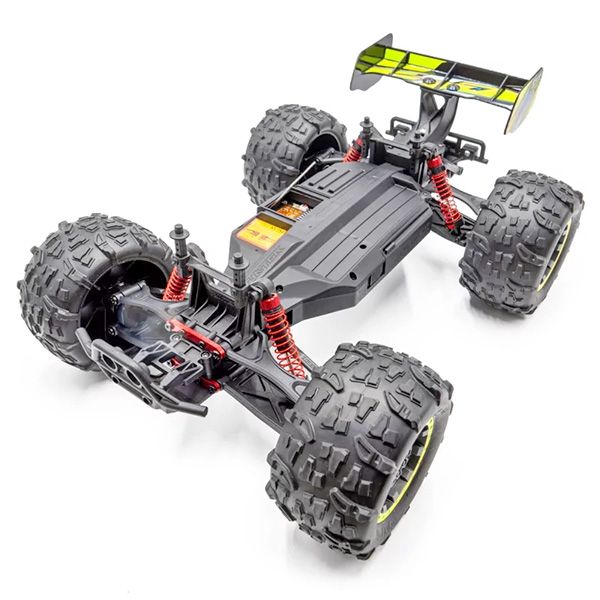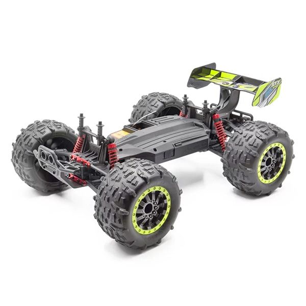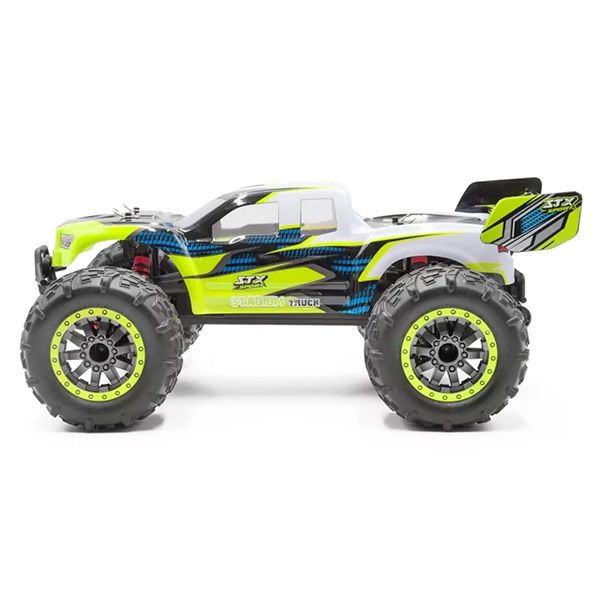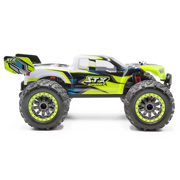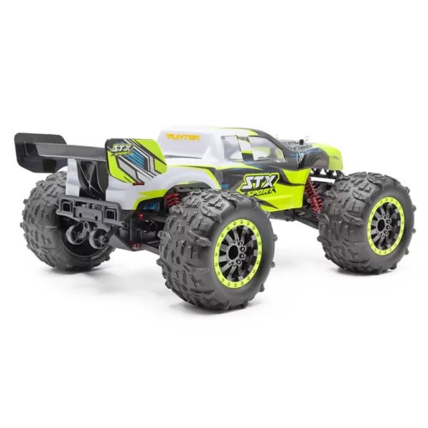 Nous vous proposons le STX Funtek jaune complet, avec batterie et chargeur ainsi qu'une carrosserie verte offerte dans ce pack. Vous aurez ainsi une voiture RC au top avec deux couleurs de carrosserie. Le STX Funtek est déjà équipé de plusieurs options d'origine comme la couronne et pignon en métal, le servomoteur de direction standard et une batterie de forte capacité (2600 mAh). Il est équipé d'une transmission en quatre roues motrices et sa propulsion est confiée à un moteur électrique type 550 de forte puissance. La finition mécanique est excellente et la télécommande est ergonomique. Cerise sur le gâteau, le STX Funtek est entièrement équipé de roulements à billes pour plus de fiabilité et d'efficacité. L'ensemble est livré complet et assemblé avec une notice en français. Il ne vous restera plus qu'à charger la batterie avec l'adaptateur USB fourni et installer trois piles LR06 dans la télécommande. Sa vitesse maximum de 50km/h peut être limitée sur la télécommande. Sa longueur de 38 cm le rapproche des modèles 1/10. Cette voiture télécommandée est idéale pour les jeunes modélistes accompagnés d'un adulte.
