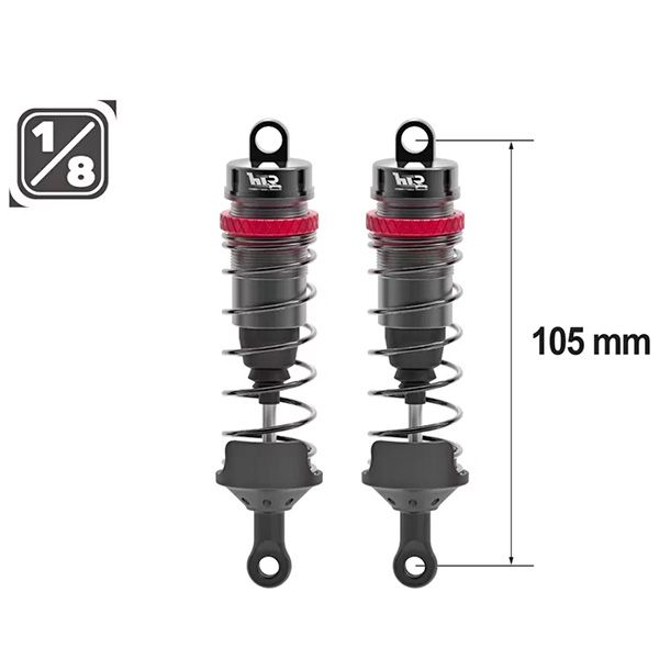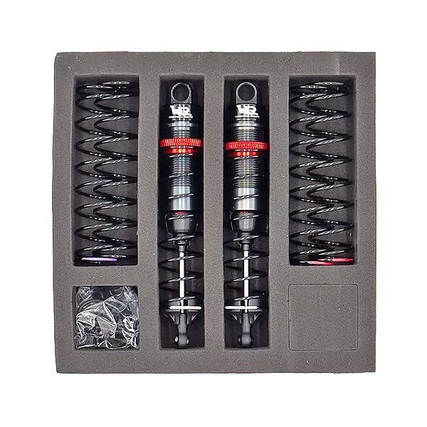 Jeu de deux amortisseurs avant hydrauliques réglables en aluminium Hobbytech pour voiture 1/8. Livrés avec 3 jeux de ressorts (Hard, Medium et Soft)