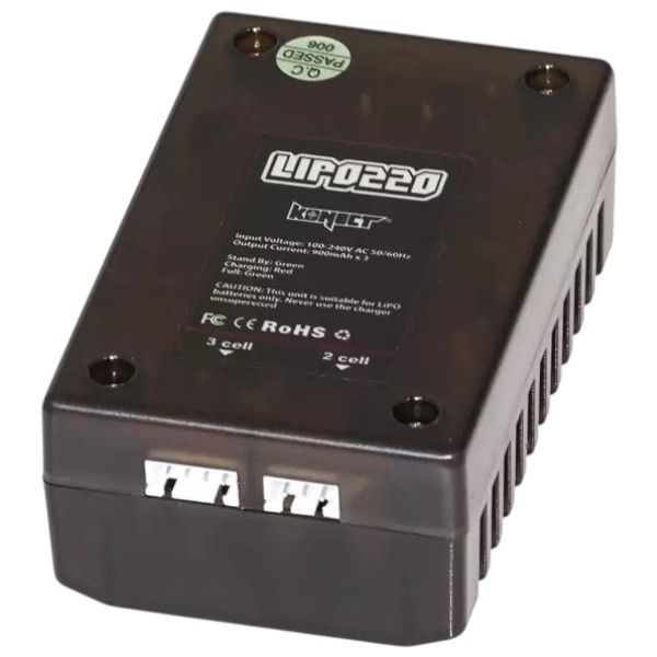Chargeur automatique fonctionnant sous 220V. Recommandé pour charger des accus de type Li-Po de 2S (7,4v) à 3S (11,1v). Le Konect LIPO220 est simple d'utilisation et idéal pour les batteries de type Li-Ion des voitures RC type Funtek STX, Bonzai, Pirate Buster, etc.