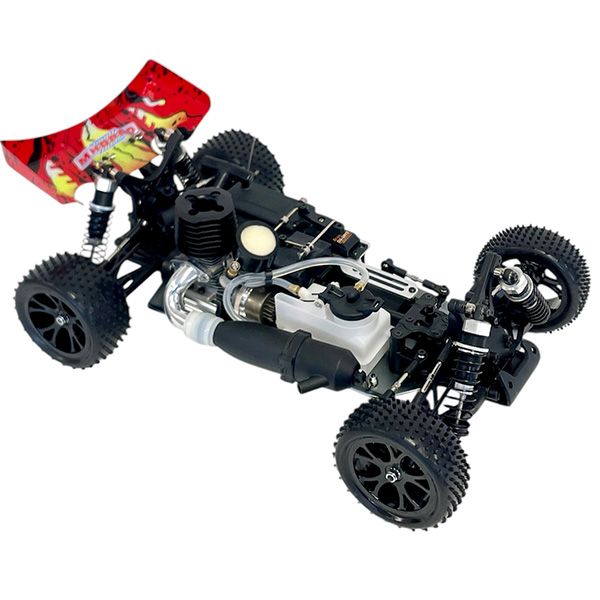 Le Buggy Flash 4WD thermique est conçu sur le célèbre châssis 1/10 pour le loisir de la marque MHD. Cette voiture radio commandée est livrée 100% montée avec la télécommande installée et la carrosserie peinte et décorée. Le Flash BX est également équipé d'un puissant moteur à tirette de 3cc, de quatre roues motrices et de quatre amortisseurs hydrauliques réglables avec de multiples points d'ancrage. Grâce à son haut niveau d'équipement et à sa garde au sol, le Buggy Flash peut évoluer sur tous types de surfaces à haute vitesse. Ce buggy thermique radio commandé est superbement équipé d'origine, à commencer par son puissant moteur thermique avec lanceur intégré. Transmission, suspensions et équipement de qualité contribuent également aux performances élevées du modèle. Conception éprouvée, amortisseurs hydrauliques et pneus spécifiques permettant d'évoluer sur tous types de surfaces à haute vitesse. La voiture est livrée entièrement assemblée avec sa télécommande à volant en 2.4GHZ.
