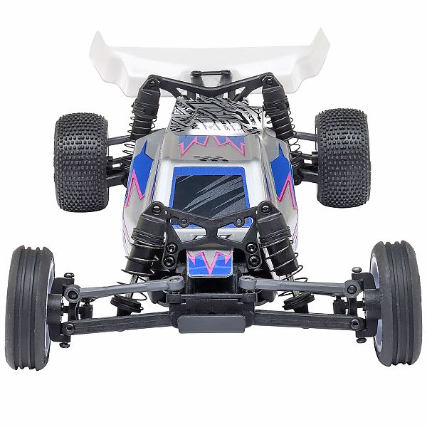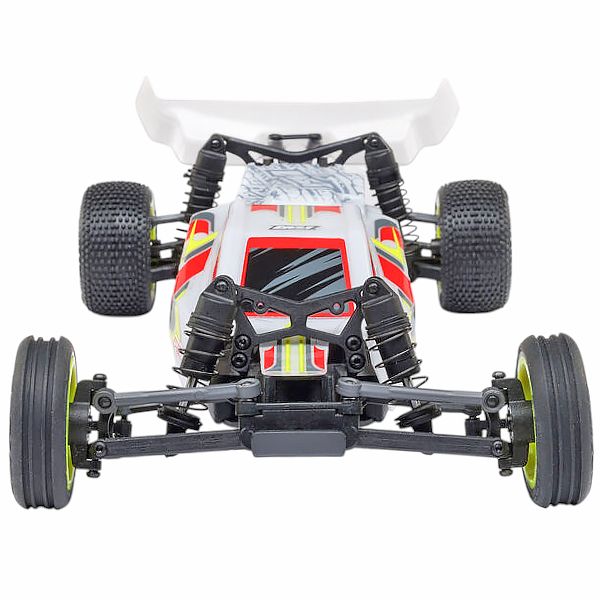 Nous vous proposons, en exclusivité, ce pack de deux voitures RC Losi Micro Buggy avec deux couleurs de carrosserie. La Losi 1/24 Micro-B 2WD est un buggy radiocommandé à l’échelle 1/24 qui vous propulsera vers de nouvelles sensations de pilotage. Compact, agile et puissant, ce petit bolide 2 roues motrices est équipé d’un moteur performant et d’une batterie Li-Po qui lui permettent d’évoluer aussi bien en intérieur qu’en extérieur. Dans le salon, le couloir ou sur une petite piste improvisée, il s’adapte facilement à différents revêtements : carrelage, parquet, moquette, asphalte, etc. Sa vitesse et sa précision de conduite procurent les mêmes émotions qu’avec un modèle de taille supérieure, dans un format miniature pratique et ludique.