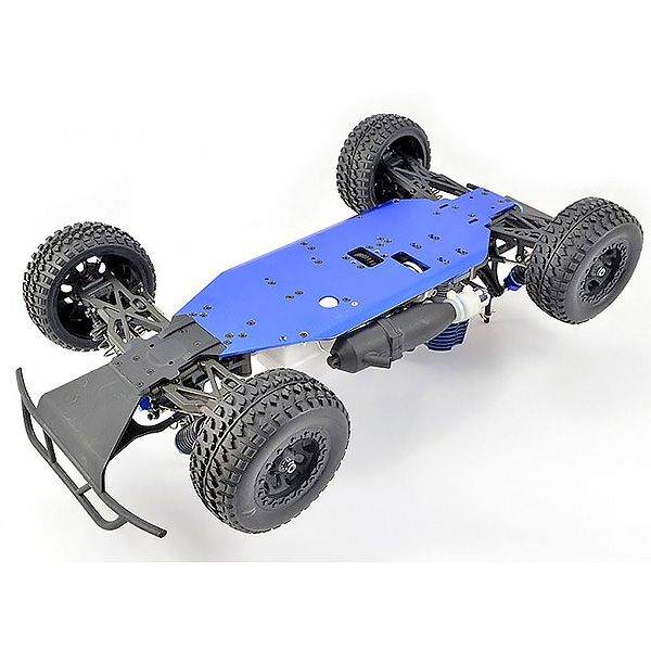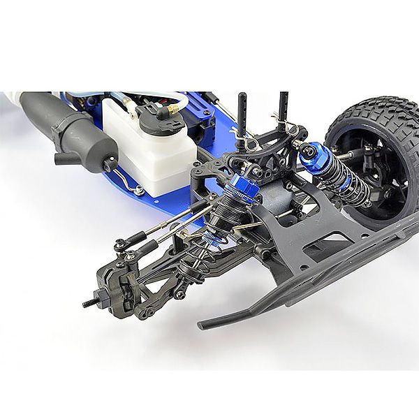 Voiture RC type Trophy Truck avec moteur thermique pour évoluer en tout terrain. Moteur Force-18 de 3.0 cc, quatre amortisseurs hydrauliques réglables, quatre roues motrices, télécommande en 2.4 GHz, vitesse en pointe 65 km/h.