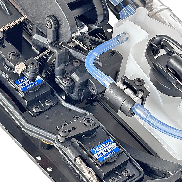 La suspension est équipée d'amortisseurs compacts en aluminium et de ressorts robustes, associés à de nouveaux supports d'amortisseurs à profil bas. Les barres anti-roulis avant et arrière, ainsi que les vis de réglage de la hauteur, permettent d'ajuster la GTB selon vos préférences, que ce soit pour le Drift, les descentes en parking ou les courses sur piste. La transmission à 3 différentiels assure un fonctionnement fluide du puissant moteur MacStar 28. Pour les amateurs de vitesse recherchant un réalisme ultime, HoBao a intégré une boîte de vitesses automatique à 2 rapports réglable en acier, vous permettant de dépasser les 90 km/h. Anticipant une utilisation intensive, la GTB est dotée d'un réservoir de carburant de 150 cm³ pour prolonger le temps de fonctionnement entre les arrêts. La radiocommande 2,4 GHz de HoBao garantit une utilisation sans interférences. La carrosserie de style GT complète le châssis, avec un pare-chocs avant en mousse pour une protection accrue. Des supports d'éclairage moulés sont également inclus en option pour installer des LED, offrant ainsi une finition des plus réalistes.