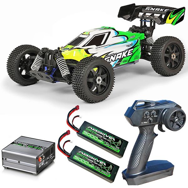 Le Pirate Snake Brushless T2M est un buggy "nouvelle génération". En effet, sa taille XL dépasse la taille standard des modèles 1/10, le ramenant aux dimensions d'un buggy 1/8. Dans cette version, T2M nous livre cette voiture RC équipée d'un moteur Brushless très puissant pour des performances exceptionnelles ! De plus, le Pirate Snake Brushless est équipé d'une mécanique fiable, ce qui vous permettra de rouler sûr, quasiment, tous types de terrain. Avec son excellente finition et son équipement d'origine, le Pirate Snake Brushless s'adresse aussi bien aux débutants qui veulent une machine puissante, qu'aux modélistes chevronnés.