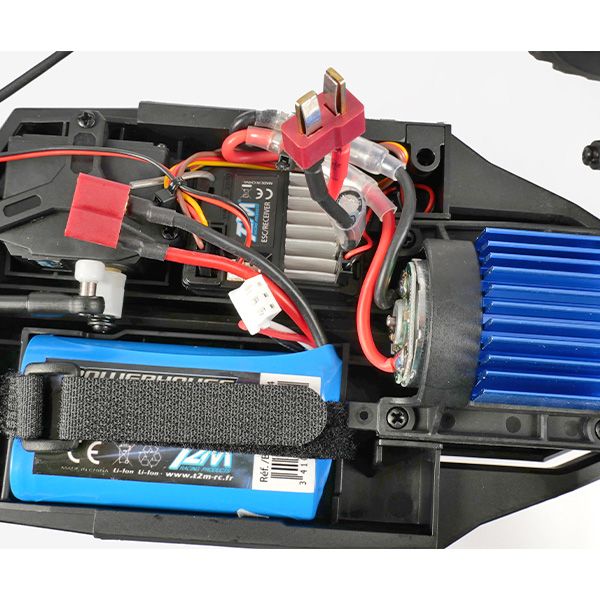 Alimentation par un accu Li‐Ion 3,7V 1500mAh en prise Dean (T-plug).