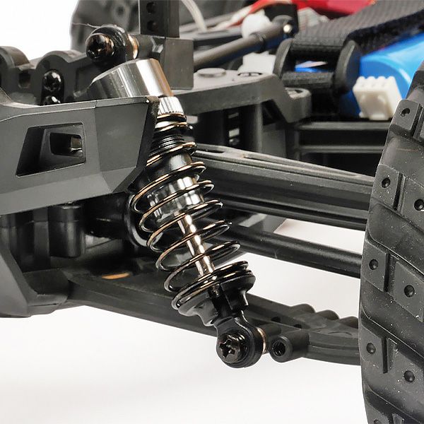 Ce truck tout terrain 1/10 électrique 4WD prêt à rouler se caractérise par ses nombreux équipements de qualité pour une fiabilité et des performances optimales. Son robuste châssis, son puissant moteur type 390, sa transmission entièrement sur roulements à billes avec deux différentiels à pignons et cardan central en acier traité, ses suspensions avec amortisseurs hydrauliques et ses pneus surdimensionnés lui permettent de se jouer à grande vitesse des pièges du terrain. La carrosserie en polycarbonate est peinte et décorée. Le pilotage est à la fois vif et précis grâce à un émetteur type volant/gâchette ergonomique 2,4 GHz. Séduisant, rapide, robuste, bien protégé et super équipé, le Pirate RacerT2M est le modèle idéal pour aborder l'univers passionnant de la voiture radiocommandée !